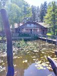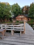 Местечко интересное.Красивые,под старину домики.Правда в домике,где мы жили были некоторые проблемки(периодически вываливалась ручка из окна при попытке его открыть,дверной замок закрывался с трудом,жидкое мыло в санузле капнуло с 10-го нажатия и следующий раз так же,запасной туалетной бумаги не было, зона мойки на кухонном небольшом участке в комнате не освещена вообще,приходилось включать фонарик смартфона).Еда очень вкусная и предлагали добавки.Скамейки при столах в зоне принятия пищи не слишком чистые и хотелось постелить подушки,которые в закрытом помещении кафешки были,но в ограниченном количестве. Есть банька.Неплохо сделаны пирсы для рыбалки и швартовки небольшого кораблика(предлагали платную прогулку по озеру).Можно было взять небольшую лодку с вёслами бесплатно. Вдоль берега красиво цветут белые кувшинки-лилии. Есть домики,где выход на мостик прямо из дома и можно сразу ловить рыбу или просто полюбоваться озером или закатом. Персонал и администрация отзывчивый и душевный.Видел ,как рыбачки вылавливали плотвичек и краснопёрок размером с ладошку и больше.Говорят,что есть рыбины побольше. Можно взять напрокат сапборд,моторную лодку,удочки.Есть зона игры для детей.Там же рядом комфортабельный деревянный туалет с умывальником. Недалеко небольшой зоопарк,не отличающийся особым разнообразием зверей. Километрах примерно в четырёх находится небольшой магазин,где можно купить самое необходимое из продуктов и хозтовары по мелочи(спиртное тоже есть).В общем,место красивое.Рекомендую посетить.