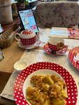 Тут домашний уют, всё этакое доброе, как будто в квартире у бабушки оказался. Цена / качество очень даже неплохи, наесться на одного (салат, вареники, чай и мороженое) - 1300 руб. Заказывать и оплачивать можно и без официанта, на столах удобные экраны, с них всё делается. Кому такое непонятно или хочется по старинке, официанты шустро подскажут, что и как. Готовят хорошо, уровень тоже домашний, не совсем ресторанный. Всё свежее. Туалет забавно оформлен, как будто оказался в далёких теперь советских временах. (на фотке)