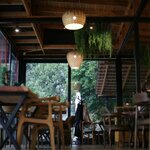 Место в самом центре Афона, интерьер современный, приятный, что особенно заметила в вазах искусственные букеты исключительно из местных фруктов: мушмула, гранат, хурма. Чистые туалетные комнаты со всем необходимым. В зале удобные стулья и красивые столешницы из спилов деревьев. Еда вкусная, свежая, посуда оригинальная, подача стандартная, цены приемлимые. Но есть минус, обслуживание быстрое, но очень нежеланное. Такое чувство что девушку заставляют здесь работать, ни слова, ни улыбки, просто как робот. За такое обслуживание 10% совсем не хочется платить!