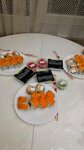Звезду сняли за начинку в роллах, она состоит только из сыра и чуточку огурца, заказывали 56 роллов разных видов, а начинка одинаковая везде. Снаружи очень понравились, много тунца, лосося, угря,креветки, отдельно хочу выделить рис, очень вкусный и хорошо сварен, не размазня и не сырой. Порция 8 штук, размер средний, то, что надо. Заказ делали по телефону, девушка сразу уточнила доставка или самовывоз и озвучила время доставки и время самовывоза, это важно, можно выбрать, что тебе удобно. Приготовление пунктуально, пришли через час , как было оговорено, все было готово. Цена порадовала, относительно других суши-баров/магазинов, не дорого. Дети и взрослые поели с удовольствием и негативных последствий после приема пищи не было.