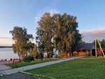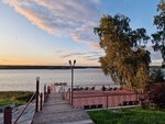 Отдыхали в этом месте 5 суток, снимали домик люкс. Территория огороженная, никто не заглядывает, это важно для комфортного отдыха, на территории веранды есть кресло, очень удобное. В самом домике грязные ковры, когда приехали, около душевой лежал мокрый коврик, что было очень неприятно, в последующем я не рискнула вставать на него голыми ногами, мылась также в тапочках, а если не проветрить ванную комнату, запах стоял ужасный... За такую цену предоставляют посуду, не самую чистую, разбавленное средство для мытья посуды, кусковое мыло и самую дешевую туалетную бумагу. За 5 суток пребывания пол помыли всего лишь на четвёртые сутки и после нашей просьбы. Просили поменять полотенца, но, увы, так их не дождались. Территория чистая. Детская площадка скромная, батут требует ремонта, так как часть пружин сломана и детям прыгать небезопасно. Бассейн чистый, довольно большой, но лежаки найти проблема, нам втроем приходилось умещаться на одном лежаке. Хоть и пишут в правилах, что курить и выпивать на территории бассейна нельзя, но некоторых это не останавливало, купались и возле борта ставили стеклянные бутылки, на лежаках курили. В правилах также указано, что после 23 часов шуметь нельзя, но многие не соблюдали эти правила, музыка могла работать и до 2х часов ночи. То есть, за порядком тут почти не следят. Есть пирс, да, действительно, там красиво, но небезопасно, территория пирса не огорожена, можно запросто свалиться в реку, доски тоже старые уже, где то торчат. Захотели покататься на катамаране, жилеты не предоставляют. Хочу отдельно отметить кафе. Еда не очень вкусная, но довольно дорогая. Обед на троих обошёлся в 1000 рублей, и мы ушли голодные. В дальнейшем питались самостоятельно, заказывали доставку из быстронома. Оплата везде либо наличкой, либо переводом, но интернет там не ловит от слова совсем... В общем, 2 звезды ставлю за бассейн, огороженную территорию и кресло на веранде, увы, больше плюсов тут нет, экономят на всем... Больше не приедем.