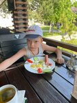 База очень хорошая, бассейн на 4. Хлорки очень много, аж в горле першит. Кафе на 4. Не все меню есть, котлеты пересоленные были. А домики и сама территория очень понравилась. Было очень здорово завтракать на веранде.