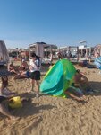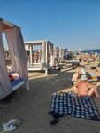 На пляже есть:спасательная служба, медицинский пункт, теневые навесы, душ, урны