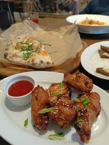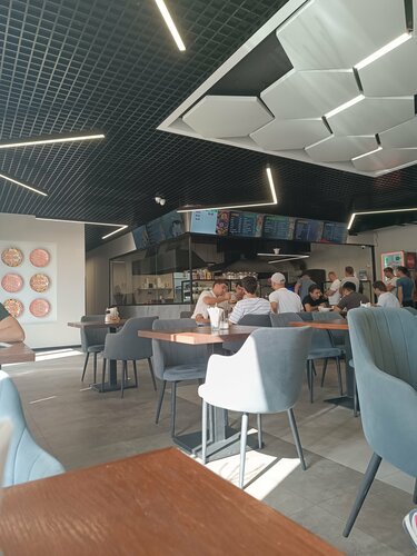 Приятно удивило кафе. Недорогие цены. Интерьер немного устарел. Но все чисто, вкусно и быстро. Пицца с креветками супер, селедочка боковая и сало 💯 супер. Хлеба можно было побольше. Но в целом рекомендую. Можно вести переговоры и не перекрикивать друг друга.