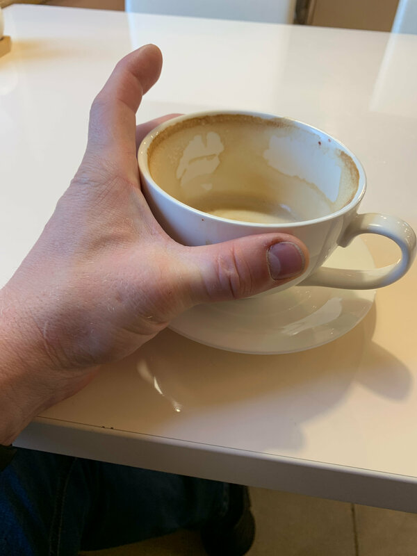 Вкусно! Кратно вкуснее чем в питейных аэропорта! Был практически во всех. Дешевле чем в аэропорту! Второе, салат, огромная кружка кофе(на фото) и торт. - 1070₽. Вполне себе. Я объелся! Внутри чисто, опрятно. Посуда нормальная! Рекомендую! Если долгая пересадка, имеет смысл придти сюда!