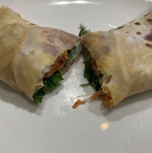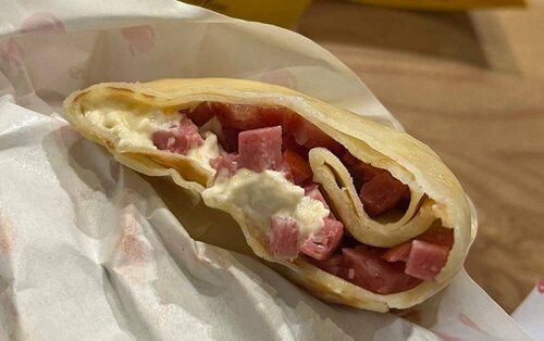 Хорошее, уютное место. Все приготовили быстро и вкусно. Блин с брауни и соленой карамелью, а также блин с охотничьими колбасками – топ🤍! Порции достойного размера, начинки тоже много.