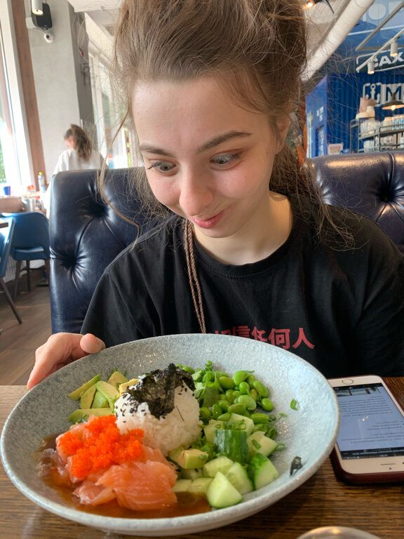 Вкусно, много, недорого. Для любителей рыбки в самый раз. Понравились блинчики с семгой, поке с лососем, том ям для дам, филадельфия. Надо бы еще попробовать что-то)