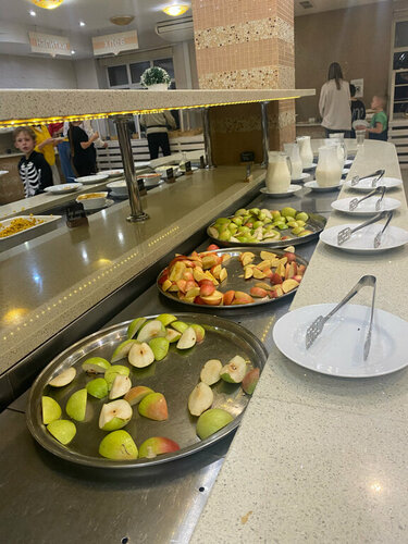 Очень старый отель. Попадешь в отель 20-ти летней давности. В номере затхлый запах, нет лифта, ванная желтого цвета, к сантехнике страшно прикасаться. На ужине очередь за макаронами и варениками, потому что есть больше нечего. Посуда со сколами. А если не хватило и такой, то предлагают воспользоваться пластиковыми стаканчиками. На десерт желе, порезанное на ромбики, яблоки кусочками. Всё. Если есть желание испортить себе отдых, это место отлично подойдет.