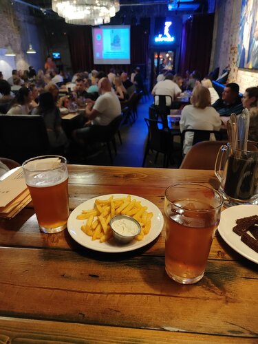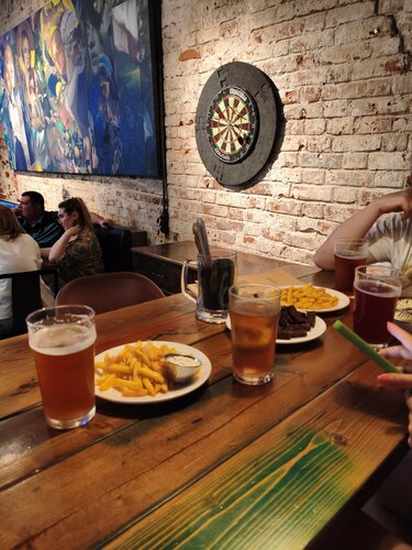 Отличный ресторан с вкусной едой и большим выбором интересного пива! Несколько залов, много столов, быстрая подача блюд и напитков, непринуждённая атмосфера. Цены очень приятные. В наше посещение проводился квиз, было интересно понаблюдать за этим мероприятием)