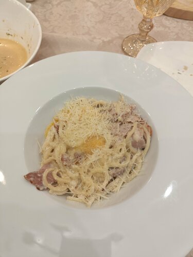 Впервые побывала в данном заведении...впечатления остались двоякие. Сидели большой компанией, сделали предзаказ блюд. Горячие салаты были уже холодные, хоть мы и пришли вовремя. Впервые видела чтобы так готовили гренки, тонкий слой прожарки краев и толстый хлебный мякиш внутри, даже соус не спасал от сухомятки. На кольцах кальмара очень уж толстый слой панировки. Принесенные друзьям стейки были тоже полухолодные. Цены в данном заведении выше среднего, поэтому будьте осторожны при заказе стейков если не готовы отдать за них больше 2к, т. к порции большие. Ну либо нам самые огромные куски сделали, мясо при этом сухое, из рыбы стейки более вкусные. Однако карбонара просто в самое сердце, много соуса, не сухая, много бекона. Так же очень понравился салат из баклажана, сочный и с вкусным соусом.