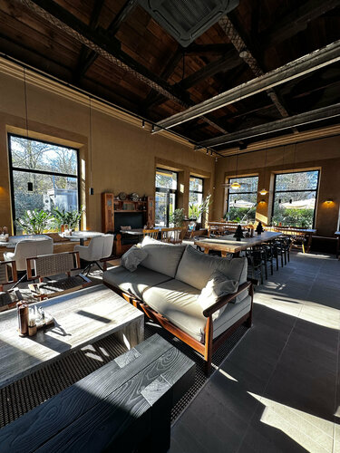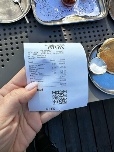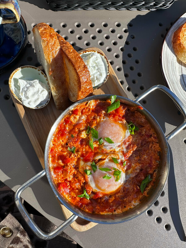 Здесь я второй раз и мне нравится ! Обслуживание хорошее, о нас заботились , протерли для нас мебель после утренней росы, пледы предложили. Сориентировали по меню и закускам . В конце спросили, что понравилось, а что нет. Еда . Ели завтраки. Шакшука как дома я делаю, бомба, острая с сыром , луком, очень вкусно. Допом соус дзадзыки. Паштет куриный оказался не нежный, ну так на 7 баллов. Кофе отличный, стоит отметить новую кофейную зону. Панкейки с вареньем - супер , конфетюр вкусный с фейхоа и алычой, люблю вкусы с кислинкой. Набрали себе домой еще продукции этого заведения, на подарки. Очень понравилось! Спасибо вам за такое чудесное кафе и пространство. Отдельно спасибо за такое количество зелени и цветов . P.s. спасибо за лаконичное меню, не на вижу, когда вместо меню - книга и не знаешь, что выбрать.