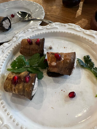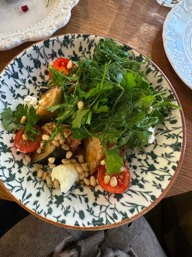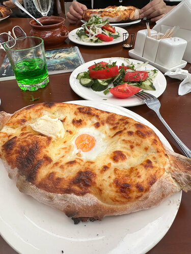 Очень честно - ну очень не очень! Начну с позитивного - обслуживание хорошее, нам были рады. А вот еда - вообще подкачала. С грузинской кухней в Сочи - готовить не по грузински - ну это фиаско. Более не вкусных рулетиков из баклажан я в жизни ни ела, что там за сыр ?! Смесь ?! Непонятно. Хинкали - самые вкусные были с сулугуни. Из сложно испортить . В остальных сырой лук , который хрустит на зубах. В салате с хрустящим баклажаном , ну очень много зелени, за это спасибо - зелень лишняя не повредит. Вообщем еда разочарование. Сами продукты свежие, но все вместе это не вкусно. Может хачапури - вкусные ?! Мы их не попробовали ?!