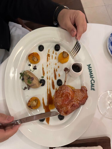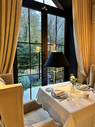 Ну наконец - то я здесь ! Однозначно стоит посетить этот ресторан, чтобы насладиться интерьером . Шикарный ресторан в лесу. Безумно красиво! По еде очень впечатлили десерты, вот лучшее что я ела на сегодняшний день в Сочи , пока так скажу 10 из 10. Утка (заказывал муж), очень вкусная, тает во рту. Кролик меня разочаровал , плавал в луке. Небольшие закуски : что то с крабом, не помню точно название - напомнило мне рыбную котлету) А вот паштет - порадовал - очень вкусно. Текстура и сочетание ! Все было прелестно. Салат с баклажаном обычный , как во всех ресторанах. Я никогда не буду занижать оценку , если продукты свежие, и если это - не мой вкус ! Поэтому для меня - еда 5. Туалеты очень красивые. Как отдельный вид искусства. Чисто. Очень не удобные меню, тяжелые. Да круто , что они с подсветкой. Но у меня руки чуть не отвалились) Даже не знаю почему такой выбор сделать меню, фантазирую, что много посетителей - пожилых. Обслуживание прекрасное. Хостес , официанты - все были нам очень рады . Спасибо !