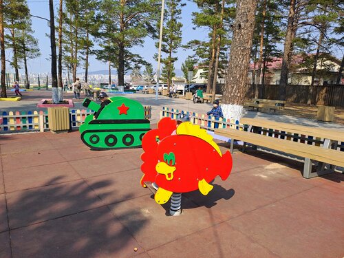 Для Читы просто отличный парк. Детские площадки, футбольное поле, баскетбольная площадка, 3 волейбольных. Тренажёры. Можно погулять в лесу, чисто, красиво. Вид на город.
