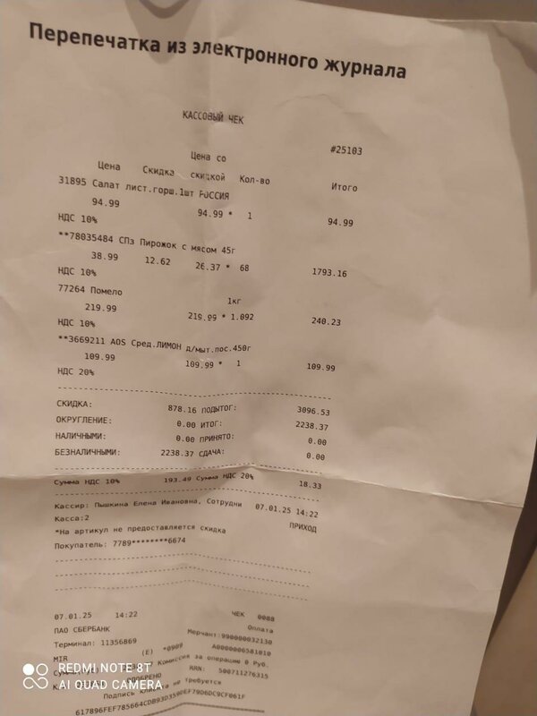 Новая схема от Перекрёстка или как продать 26 испорченных пирожков с мясом. Вчера моя мама на пенсии отправилась в этот Перекрёсток. Купила товаров на 450руб. приложила карту, чек не выбили и даже не предложили. Только дома обнаружила, что списали с карты за покупку 2230р. Пошла разбираться. С первого раза её в грубой форме отправили домой сказав, что это банковская ошибка и надо идти в банк. На второй раз позвали менеджера, распечатали чек и увидели, что кассир вместо батона пробила 26 пирожков с мясом. Вернули деньги, нахамили, даже не извинились. Граждане, проверяйте внимательно, что вам пробивают в этом магазине, если уже пенсионеров даже общипывают. Ничего святого уже нет.