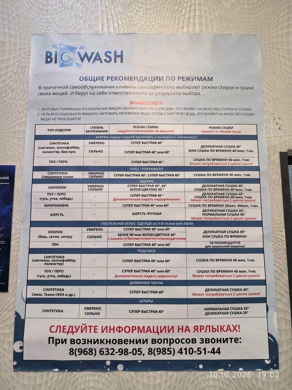 Сегодня только узнала,что есть такое замечательное место,на Лескова 26,позвонила на горячую линию,познакомилась с прекрасным человеком,зовут его Александр,так как это был мой первый опыт,позвонила ,он все доходчиво мне рассказал и объяснил,цены демократичные,постирать и высушить одеяло за 600 руб.это дёшево,совсем уже не хочется нести в химчистку,потому что обдирут,как липу,так ещё и грязное вернуть.Вечером пришла в прачечную,,5 раз позвонила Александру,то один вопрос,то другой,все поэтапно ,очень подробно рассказал,были сомнения,как включать,как все сделать правильно,в итоге,я осталась с отлично выстиранным белоснежным одеялом,с прекрасным настроением,однозначно рекомендую и буду рекомендовать своим знакомым,можно принести все гели и кондиционеры и пятновыводитель с собой,можешь пойти гулять по магазинам,можно наблюдать за процессом стирки,чистота в помещении идеальная,машинки все наичистейшие,обувь стирать запрещено.Огромное спасибо за такую находку рядом с домом и процветания Вам