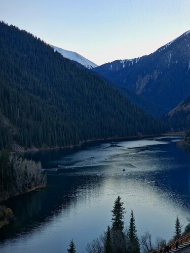 Ехать 4 часа от Алматы, там 3 озера, мы были только на одном. Красивая природа и чистый воздух. Есть где перекусить и столовые, и ресторан. В ресторане средний чек на человека 10.000. Там где ресторан есть и отель ,чтобы переночивать. Номера от 30 тыс тенге, домик 145 тыс тенге. По дороге на Кольсай есть ещё 1 красивое место Черный Каньон.