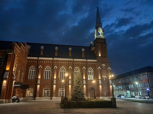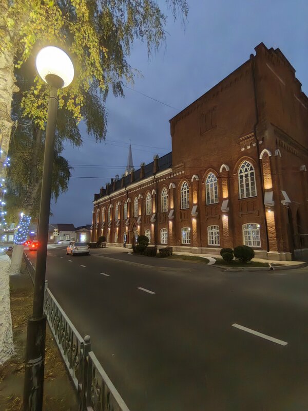 Красивая архитектура здания, что особенно выделяется вечерней подсветкой. Оформленный двор, много лавочек. Внутри, к сожалению не была.
