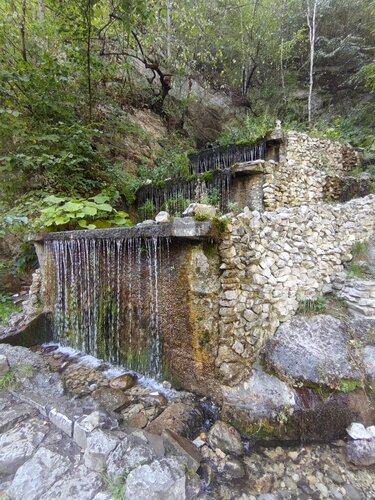 Чистая вода. Мягкая. Без привкуса. Спасибо человеку, соорудившему это место. На обьявлении есть информация, что это питьевая вода. Не нужно забираться на ступени водопада. И все же есть в России люди не обученные чтению - о чем свидетельствует собранная на верхней ступени водопада пирамидка из камней. Люди, не надо так.