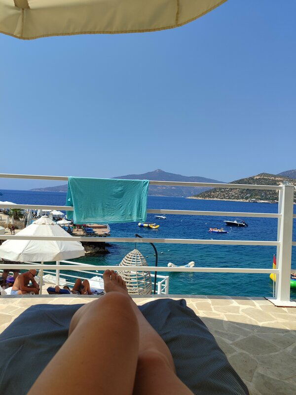 Жаль, что только в последний день отпуска в Калкане попала на этот пляж... 350 лир за лежак и зонтик. Батут на воде - сууупер!!! Бонус - бесплатная доставка на лодочке до центральной пристани😊 Рекомендую!