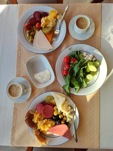 Классное в отеле только одно - вид. Всё остальное ☹️🥴 Хорошо, что уборка каждый день. Ушатанный номер (ручка от балкона просто отвалилась), старый кондер, неработающий фен (заменили при мне), неудобные подушки, холодильник держится из последних сил😅 До 2 ночи под окнами орёт музыка. Завтрак - норм (смотрите фото). Не стоит своих денег в сезон, а вот зимой по сниженной цене - вполне)
