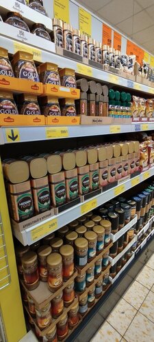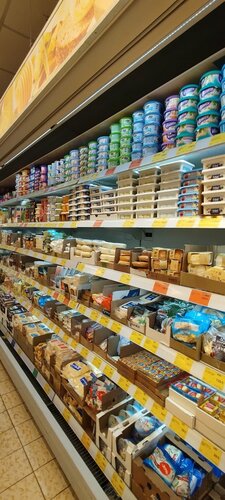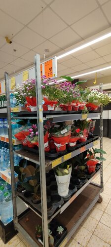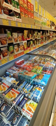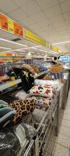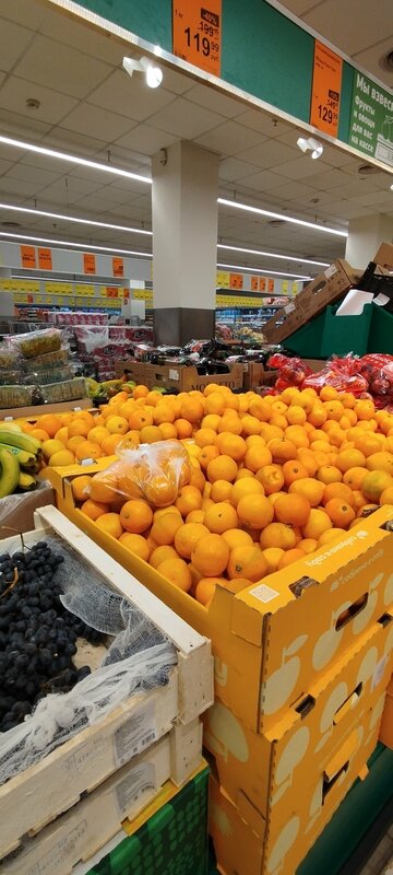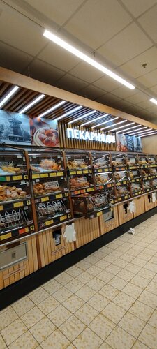 Супермаркет находится на -1 этаже ТЦ Колумбус 1 Достаточно большой и светлый. Потолок низкий, поэтому много света. Это приятно. Большое расстояние между рядами с товаром. Легко разъехаться двум тележкам. Красивые фрукты. Без гнилых. Шикарная выпечка. Круассаны по 29 р. И с шоколадом и с малиной. Разновидностей 5 наверное. И другие плюшки. В магазине все чисто, ухоженно. Все стоит ровненько и с ценниками. Мне понравилось, что светло и много пространство. Так не везде к сожалению. 2 ноября. Но магазин уже украшен к Новому году. Новогодние товары и шоколадные дед морозы. 🧑‍🎄