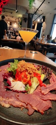 Супер замечательно. Приветливые девушки на ресепшене. Хотя народу конечно очень много. Можно сказать толпа. И это все по бронированию. Просто так туда не зайти. Но персонал справляется. В ресторане три этажа. Нам достался столик на 2 этаже. Огромное спасибо. За скорость принятия заказа, понимания с полуслова, что мы хотим. И за рекомендации по выбору коктейлей. 🍹 Обслуживание быстрое. Хоть и полная посадка. Все очень вкусно. Хотелось бы меню с картинками блюд. Мы выбирали на сайте в телефоне. Обязательно вернёмся. На день рождения поздравили и в качестве комплимента угостили сладким десертом. Спасибо за теплый прием.