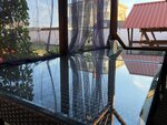 Деревянный каркасный дом на 10 номеров, большая парковка для авто. Есть общая кухня, чайник в номере, холодильник, кондиционер, санузел. Звукоизоляции никакой. Соседей слышно, будто они ходят у тебя в номере. Жарко под крышей на втором этаже, кондей не помогает. Вторая линия, до пляжа близко, до центра и магазинов далеко.