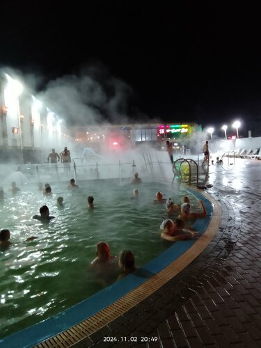 Ездили в термальные источники с экскурсией 02.11.2024, что очень удобно. Посещали новый комплекс. Раздевалки небольшие отдельные для мужчин и для женщин,на входе дают браслет с ключом от шкафчика. Переодеваются в общей раздевалке, кабинок нет, есть душевые кабинки и туалеты, при желании можно там переодеться. На полу везде вода, тапочки необходимы. На территории несколько бассейнов открытых с температурой воды +33/+39 и один маленький бассейн с холодной водой +9. В самом конце площадки находятся несколько небольших бассейнов с гидромассажем. Визуально самая концентрированная вода в первом бассейне, вода там жёлтая. Наш экскурсовод рекомендовал чередовать горячий - холодный бассейн, по 10 минут купаться в горячем, потом в холодном. У нас так не получилось. Мы чередовали тёплый и горячий бассейн, периодически выходя из бассейнов. Температура на улице была +8 градусов. Нам комплекс понравился. Приятно провели время. Час пролетел быстро. Рекомендуем к посещению.