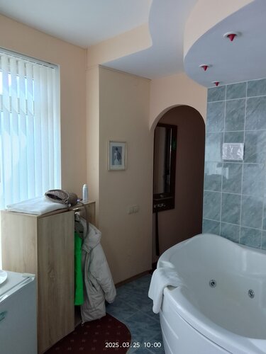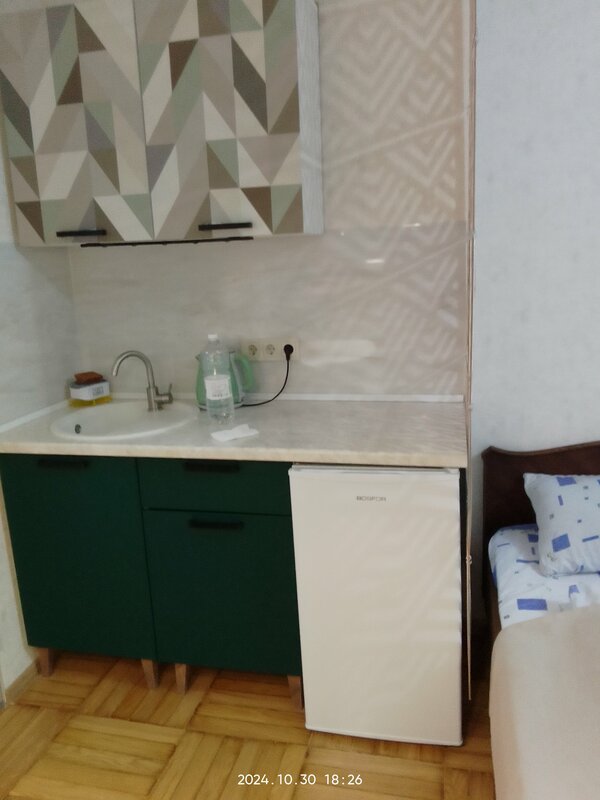 Отдыхали в гостевом доме с 30.10.2024 по 03.11.2024. Условия проживания отличные. Снимали студию с собственной ванной и кухней. Ремонт хороший, комната светлая и уютная. Было всё для комфортного проживания: две кровати, диван, стол и стулья, телевизор, WiFi, гладильная доска и утюг, чайник, плита, посуда, специи, фен, полотенца, шампунь, мыло, салфетки... Расположение гостевого дома идеально для отправления на экскурсии с остановки администрации, до вокзала близко, магазины и кафе рядом. Спасибо Татьяне за оперативное решение всех вопросов. Нам всё понравилось.