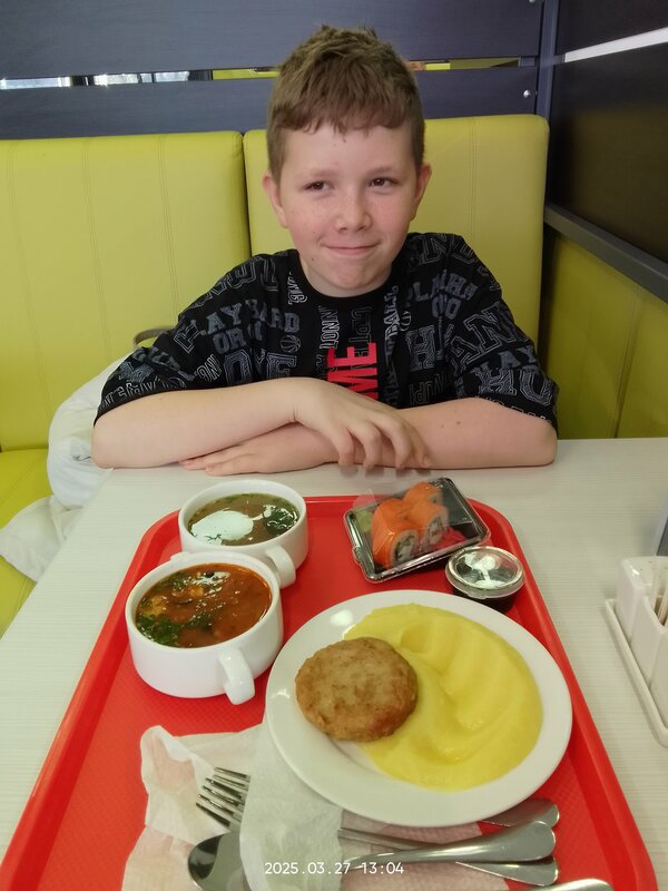 Хорошее кафе, посещали 05.08, заказывали из меню бизнес ланча. Еда свежая и вкусная. На 1200 руб. взяли: суп, салат, макароны с отбивной, пиццу, 2 компота и кусок торта. Ждали заказ 10-25 минут(пиццу дольше готовили). Помещение чистое и светлое. Официанты молодые, общительные приятные ребята, стараются.