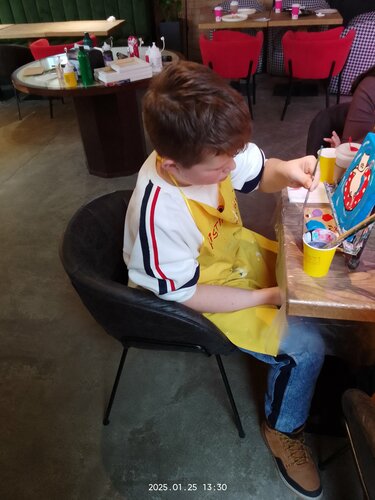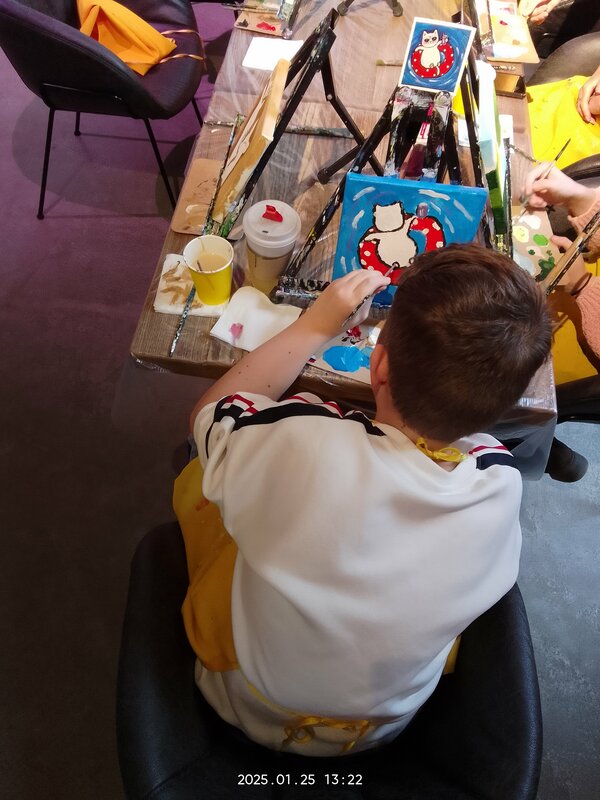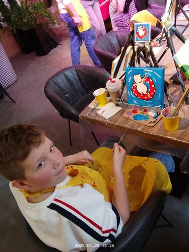 Ходили на местер-класс с сыном 25.01 рисовать картину. Отдохнули хорошо. Рисование под музыку под руководством чутких организаторов нам очень понравилось. Душевно провели время, ещё и позавтракали, сделав перерыв. Позитивно и необычно провели время, остались довольны. Спасибо организаторам и девочкам-художникам, которые помогали рисовать. К посещению рекомендуем.