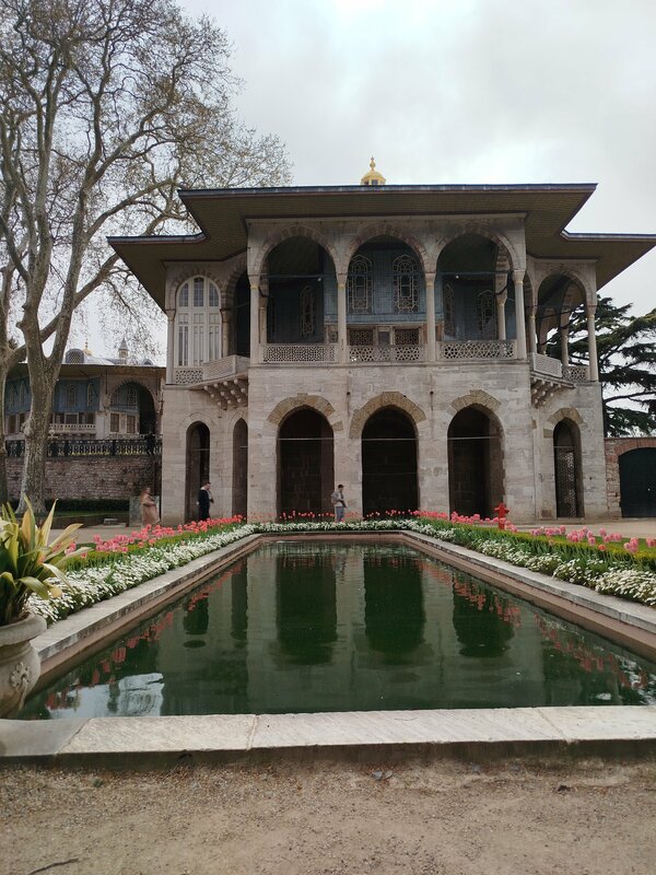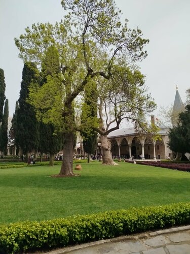 Нельзя быть в Стамбуле и не побывать во дворце ! Конечно пришлось отстоять огромную очередь за билетом но не зря! Перед входом конечно гиды предлагают свои услуги за 60 ,50 евро , когда мы отказались нам предложили за 30 евро за 2 часа мы вновь отказались и не зря! Почему? Потому как мы провели во дворце в своем темпе 6 часов, представляю как бы мы за 2 часа носились по дворцу ! Итак все по порядку : 1. Очередь большая но двигается быстро , мы стояли 30 минут. Входной билет стоит 2000 лир ( на апрель 25 г. это 4600р) 2.далее отправились за аудиогидом ( он бесплатный , в залог оставили паспорт) настроили на русский и вперёд 3. По территории гулять не перегулять , мы наслаждались красотой и масштабами этого города в городе 4. При выходя конечно хочется есть и выпить кофейку , но не стоит брать кофе в ларьке у выхода очень не вкусный , зато дорогой кофе ! 5. Наша прогулка заняла 6 часов которыми мы наслаждались и погрузились в великую османскую империю 6. Вход с гарем оплачивается дополнительно . 7. Фотографии получаются шикарные