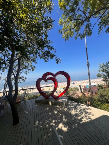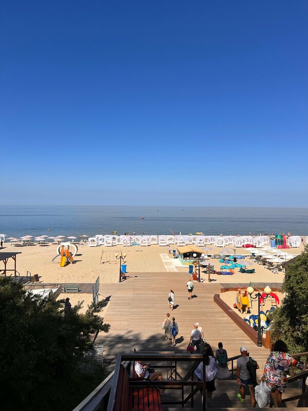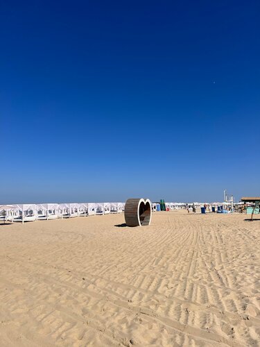 Прекрасный оборудованный пляж. Есть лежаки и зонтики, кабинки для переодевания. Чистый белый песок, удобный вход в воду, детские площадки. Проход на пляж через старинный, очень красивый, ещё немецкий парк им. Мориса Беккера. Есть кафе, рестораны.