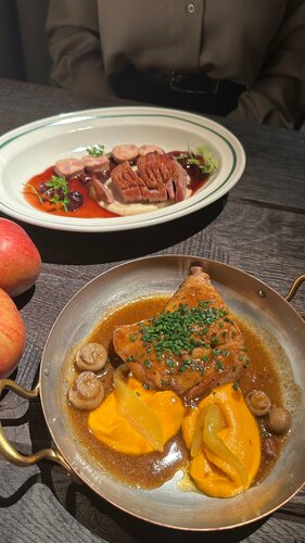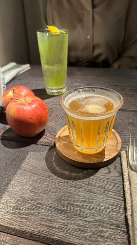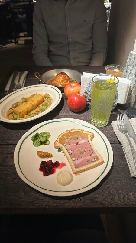 Французская кухня в осенней Москве: пате ан крут, питивье, гратен, кок-о-вен и утка. Для сидрерии неплохо, но уровень пока не ресторанный, особенно в плане потерянного сервиса.  Несмотря на это практически полный зал Pomme Verte в обед и скорое открытие второй точки говорят о популярности места. Сидры не пробовала (но в премиальном супермаркете дешевле😁), коктейли слишком спиритуозные. В целом можно зайти на огонек, цена-качество для этой локации хороши.  Отдельный респект гардеробщику, лучший в своем деле.
