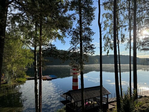 Повезло посещать эту базу несколько раз. В целом впечатления положительные. Огромная территория, озеро с организованным пляжем, великолепная природа. Плюсы: 1. Активный отдых. Можно взять в прокат лодку, катамаран, ведосипеды. Рядом есть конюшня с феромой. Можно покататься на лошадях и покормить козочек, кроликов, осликов. На территории конюшни также живет павлин. Также на территории есть поле для мини-гольфа. 2. Наличие детской комнаты, но она платная. 3. Спортзал 4. В определенные дни в ресторане на территории работает диджей . 5. Возможность выйти за территорию и погулять по окрестностям. 6. Спа-зона( по записи). 7. На День Рождения приятный комплимент от базы♥️🔥 8. Котики 🐈 Минусы: 1. Завтрак. Во-первых, очень мало места для размещения всех желающих покушать. Летом это ощущается не так сильно т.к. столики стоят в т.ч. на улице. В остальное время года в распоряжении отдыхающих два средних зала,в одном из которых расположена раздача, и один совсем маленький. Как и пишут многие, что можно было бы развести потоки людей , сделав завтрак хотя бы с 8ми утра. Во-вторых, стоимость завтрака достаточно высока для такого ассортимента. В-третьих, не всегда успевают вовремя заменить закончившиеся блюда. 2. Бутилированную воду дают только при заезде. 3. Ресторан на территории. Меню небольшое, но даже при этом бывают блюда на стопе. Кухня вкусная,а вот обслуживание медленное и неспешное. 4. Обслуживание. Не всегда возможно дозвониться до ресепшн или спа-зоны. 5. Очень медленный лифт в Атлантисе. Мы всегда ходили пешком. В целом хорошая база. Нам нравится. Самое главное, что с каждым приездом мы замечаем улучшения и развитие территории🙂
