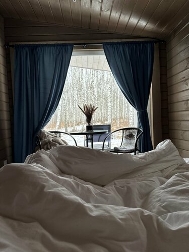 Не разделяю мнения с негативными отзывами, оставленными ранее. Пребывание в глэмпинге оставило только положительные эмоции. После бронирования я сразу связалась с управляющей. Указала свои пожелания, в том числе по выбору купели. Все было учтено. Встретили нас в положенное время. Дали домик с той купелью, которую попросили (с подсветкой). Так как купель деревянная и достаточно большая, грелась она действительно долго. Лучше закладывать на это часов 5. Но оно того стоит. Купель держала температуру аж до следующего дня. Да, в домиках пока нет всех удобств (крючки, зеркала, телевизора, алисы, фена), но и глэмпинг открылся совсем недавно. Думаю, что скоро это исправят. Везде идет стройка, посмотреть нечего. Полное уединение с природой. Из посуды в наличии все самое необходимое, кроме разделочной доски. Но несмотря на это, после завершенной поездки мы забронивали еще три домика и вернемся сюда еще)