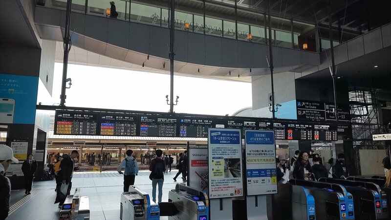 Огромный вокзал, откуда поезда едут в разные стороны Японии. Желательно предварительно осмотреться, чтобы понять куда бежать на синкансен. Лучше просто зайти прогуляться. Есть печать для блокнота. Есть сервис доставки чемоданов. Оказывается из Осаки необязательно на этот вокзал приезжать, есть другая станция.
