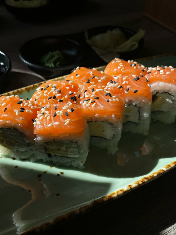 По моему скромному мнению, это одно из лучших заведений сети 🖤 Во-первых, просторный зал с множеством зон. Во-вторых, хорошая детская комната. Ну, и современный уютный интерьер. Еда вкусная, свежая. Роллы хорошо скручены, не разваливаются. В детском меню не только наггетсы и фри, что плюс :)) Может, нам везет, но отдача блюд всегда достаточно быстрая, даже при полной посадке: ни разу не ждали более 35 минут. Отдельно хочется отметить работу официантов и клиентоориентированность. Например, попросили чай с мятой, но мяту отдельно, так как у человека на нее аллергия. Официант сделал пометку, повторил заказ. Но принес чай с заваренной мятой. Ставит на стол и вспоминает сам: «Так, а мяту же Вы отдельно просили?». Мы подтверждаем. Он: «Сейчас решу этот вопрос». Уходит и приносит новый чай и мяту отдельно. Были приятно удивлены 🥹 Да и вообще работники создают очень приятную атмосферу: встречают приветливо, учитывают пожелания по посадке, ориентируют по меню (состав блюд). Спасибо за всегда качественный сервис ♥️
