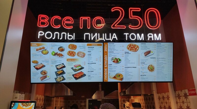 Вчера вечером муж впервые решил попробовать здесь еду - целый день в делах, надо было что-то быстро перекусить. Заказал том ям с курицей и запеченные роллы с крабом. Роллы, ожидаемо, маленького размера. Начинки тоже практически нет. Но и это было ожидаемо, так что к роллам претензий нет :) А вот Том Ям сперва приятно удивил объемом порции. Привкус показался чуть странным, но мало ли рецепт какой.. Не мало ли :) Через 2 часа после еды почувствовал себя плохо. Хорошо, что ел там только он, а мы с ребенком выбрали другой корнер. Вдвойне хорошо, что уже дома были :) Отдача блюд - 20-25 минут примерно. Еду подают не в одноразовой посуде, если кому-то важно. Не знаю в чем причина - в Том Яме, плохо вымытой посуде или тому, что еда стоит так, что посетители находятся рядом с ней, но повторно возвращается желания нет :)