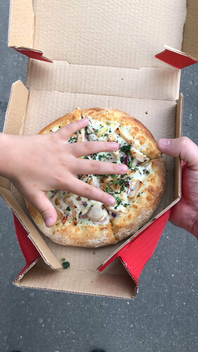 Сюда хожу заказы с Али постамата забирать, а пиццу ни разу брал так как постоянно заказываю с другом месте. В очередной раз приехал за посылкой с детьми, дети захотели пиццу грибной жульен заказали 26см за 490р и просто были в шоке это пробник 16см , на переходе возле метро размером больше и вкуснее, но это рядом жульеном не стояла. Теперь понятно почему тут как не зайдешь никого не бывает