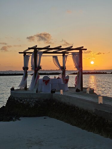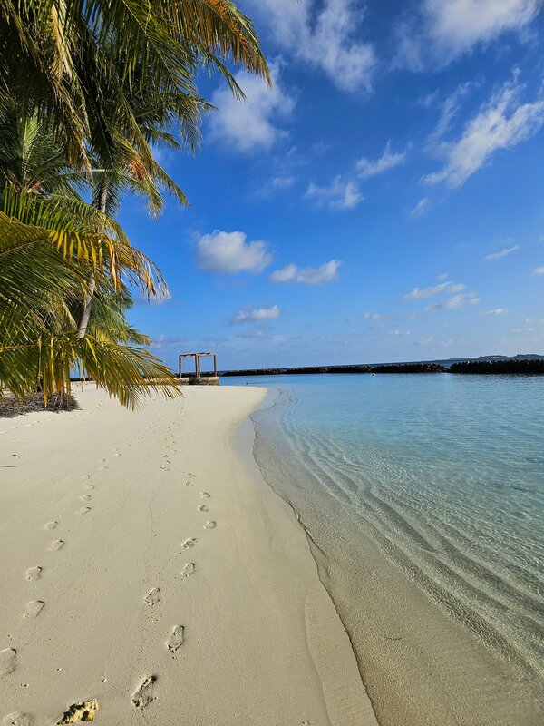 Прекрасный отель Курумба! Кокос 🥥в переводе и нас знаково приветствовали кокосовым мороженным по приезду.🍧 Были с 13 по 20 октября,самый дорогой сезон,как нам сказали. Все только начали приезжать,да это и неплохо,живёшь себе на необитаемо обитаемом острове-красота! Тёплый индийский океан,можно сказать круглосуточно. Иностранцы мало купаются,океан был наш. Берите маски,трубки и ласты,подводный мир увидите,рыбы🐟🐠🐡🦀 различной величины и окраски,скаты,морские огурцы,возможно мы даже видели небольшую 🐋акулу,но опасности здесь нет. Чистый белоснежный песок. Мусора нет персонал ходит все убирает и чистит. Все вежливы,улыбаются и это приятно! Желательно знать английский,хотя есть и русифицированный персонал,что приветствуется. Остров зелёный,можно обойти неторопясь за 40 минут,много цветов,сад орхидей. Я прекрасно отметила свой юбилей в рыбном ресторане Thila,все блюда были великолепно приготовлены,спасибо шефам.🍣🦪🍤 7 дней достаточно для отдыха,это был незабываемо,сюда хочется вернуться!🏝😇 Пожеланием :брать бунгало и inclusive!☝️