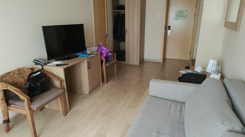 Из минусов. Запах канализации. Старая сантехника. 5 этажей и нет лифта. Дороговато за такие условия. В остальном всё хорошо. Чисто. Вежливый персонал.