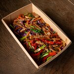 Вкусная лапша, большая порция, приходила поздно вечером, когда уже мало что работало в Сочи. Накормили вкусно:) В подарок дали газировку 💪😁🔥