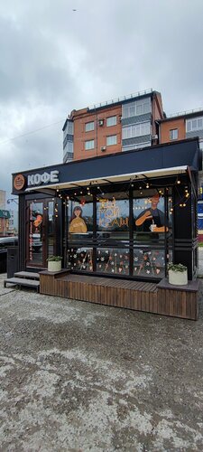Зашли в стильный павильон, внутри очень уютно, вежливая девушка-бариста очень быстро выполнила заказ из трех порций разного кофе. Всё быстро, ароматно, по стоимости не дороже, чем в других кофейнях. Приятное место, приятное обслуживание. Спасибо вам и процветания