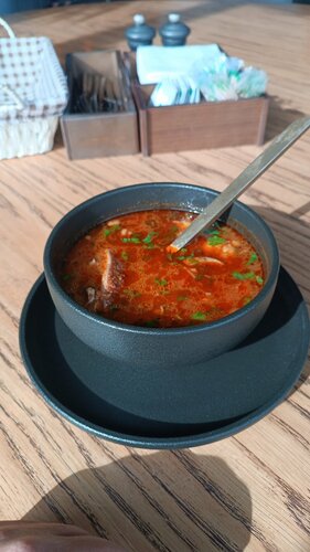 неожиданно вкусно. хозяин сам готовит и с удовольствием поговорит с гостчми