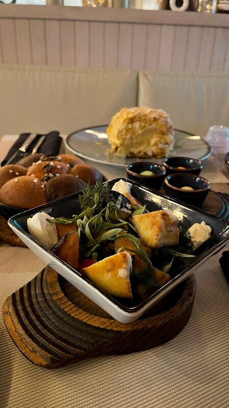 Великолепная кухня, отличное обслуживание В качестве приятного комплимента получили вкуснейшие булочки с пылу, с жару и несколько видов масла к ним, а на десерт авторские конфеты Однозначно, одно из лучших мест города
