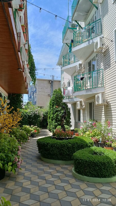 Всём здравствуйте! Сейчас отдыхаю в отеле Енесей, территория уютная небольшая, много цветов, всё аккуратно и чисто, персонал старается, дети в восторге то в бассейне, то на детской площадке, то бегают по территории. Есть платная стоянка 300 руб, до моря далековато минут 20, там мы были два раза, ездим на машине то на косу Тортуга, то на Сукко, то в Благовещенск - коса, везде стоянки платные 300-500 руб. Кушать ходим в ближайшие столовые, рядом вкусные шашлыки, на Черноморской ул. столовая неплохая - есть что детям поесть. Всё нравится. Маргарите спасибо за уют.