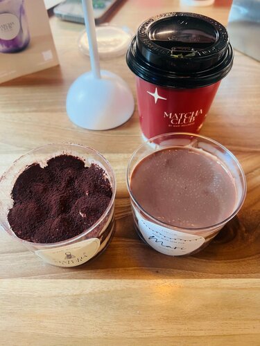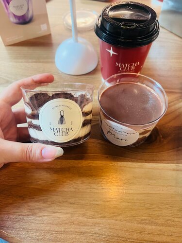 Matcha Club — очень красивое и спокойное место с приятной атмосферой. Уютный интерьер, расслабляющая обстановка и ощущение уюта с первых минут. Чизкейк «Зебра» — настоящий восторг: нежный, сбалансированный по вкусу, буквально тает во рту 🤍 Тирамису, к сожалению, не оправдал ожиданий — вкус оказался простым, без того самого «вау». Отдельный минус — подача. Для такого элегантного места одноразовые стаканчики и контейнеры выглядят не совсем уместно и немного портят общее впечатление. Хотелось бы более эстетичную!