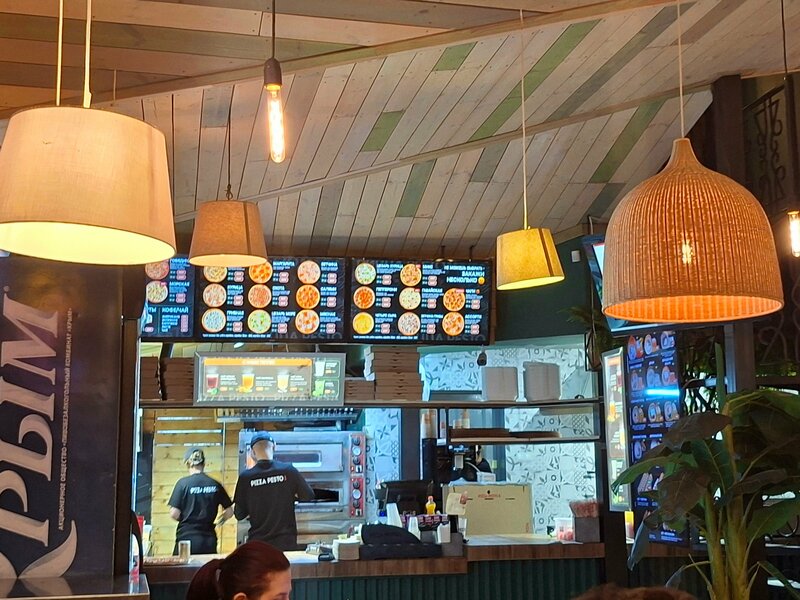Отличное место чтобы посидеть с друзьями семьёй или отпраздновать какой-то праздник. Хорошее и доступное расположение (на набережной) Красивый декор на улице Внутри уютная и домашняя атмосфера, приятная музыка и конечно же вкусная пицца с тонким тестом с мастерски подобранными специями быстро и наглядная готовка. В общем всех плюсов мне перечислить) Всем советую посетить это прекрасное заведение!